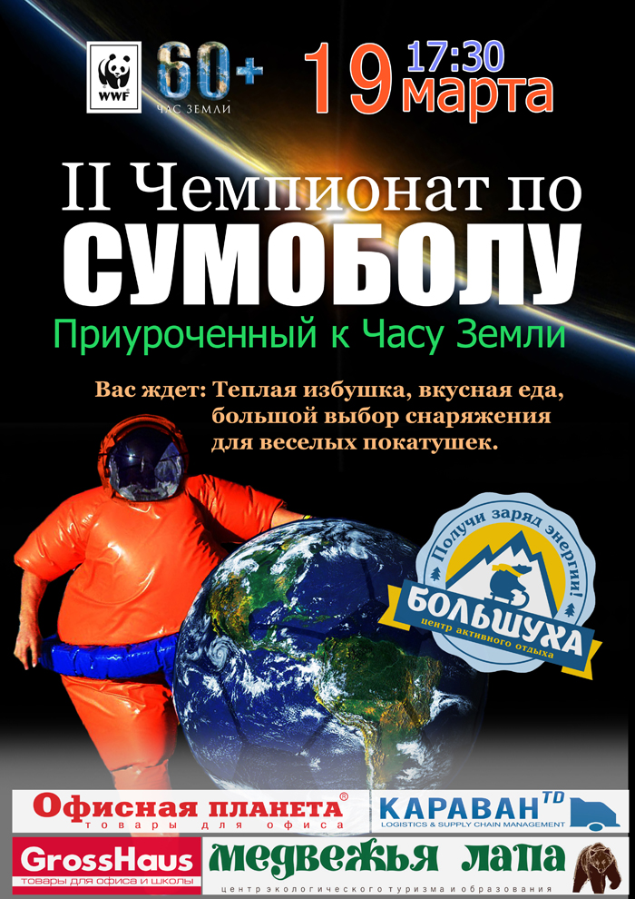 И наш регион не отстает от других, и все большее количество людей старается на один час выключить в домах свет. Надеемся на привлечение городских объектов, таких как площадь Администрация города Нарьян-Мара, Окружная администрация, Главпочтамт и Дворец культуры «Арктика». Так же привлекаются такие предприятия в городе, как здание ТПП «Лукойл-Севернефтегаз», ООО «Башнефть-Полюс», многие общественные здания. 19 марта имеет и другое значение для жителей нашего города. Во второй раз нарьянмарцы участвуют в Чемпионате по сумоболу, который, по словам участников, должен уже быть традиционным. Сбор всех сумоболистов состоится 19 марта в 17:30 в центре активного отдыха «Большуха». Ждем всех! Отлично повеселимся и покатаемся!
