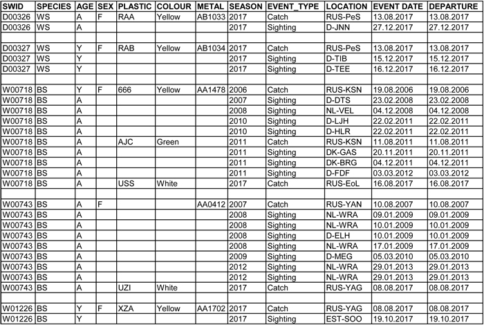 Ниже истории 21 птицы, меченных в Печорском море. За летний сезон 2017 года в заповеднике "Ненецкий" было кольцовано 95 лебедей.