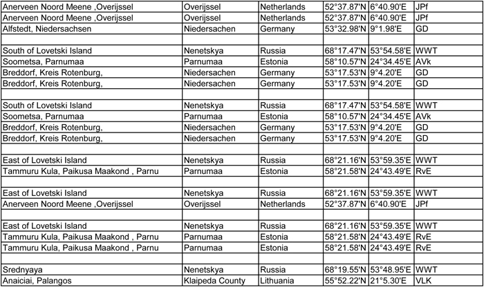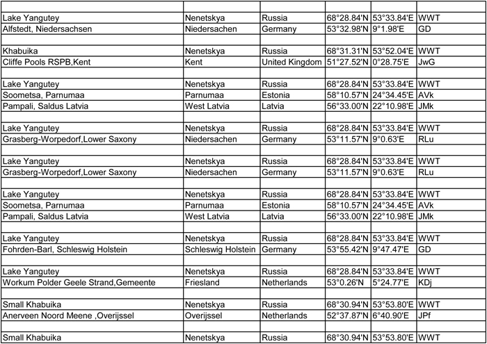 Прекрасные новости от наших английских коллег. Нам было приятно узнать, что лебеди , окольцованные в августе 2017 года в заповеднике "Ненецкий" благополучно добрались до зоны зимовки и теперь часто встречаются европейским наблюдателям. Сообщения о встречах приходят в Центр WWT из Эстонии, Литвы, Латвии, Германии, Дании, Нидерландов и Великобритании.